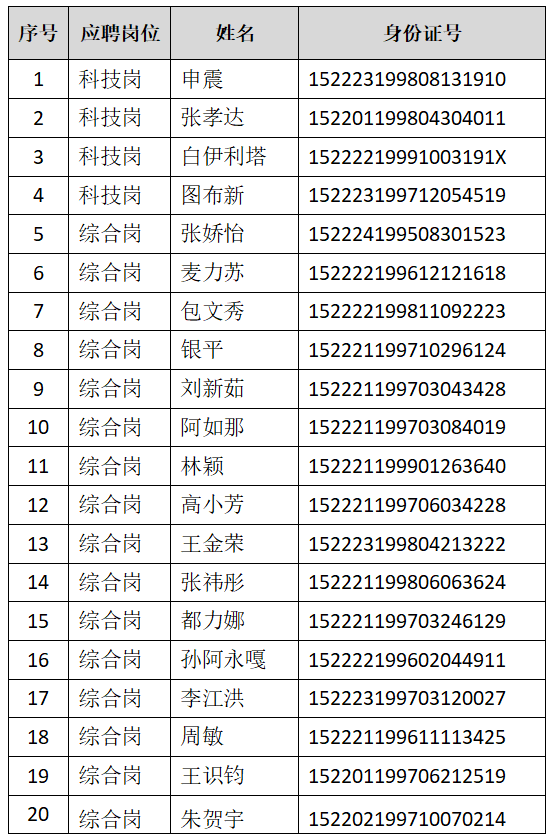 經過現(xiàn)場資格初審,以下人員入圍筆試環(huán)節(jié),現(xiàn)公布如下(名單):